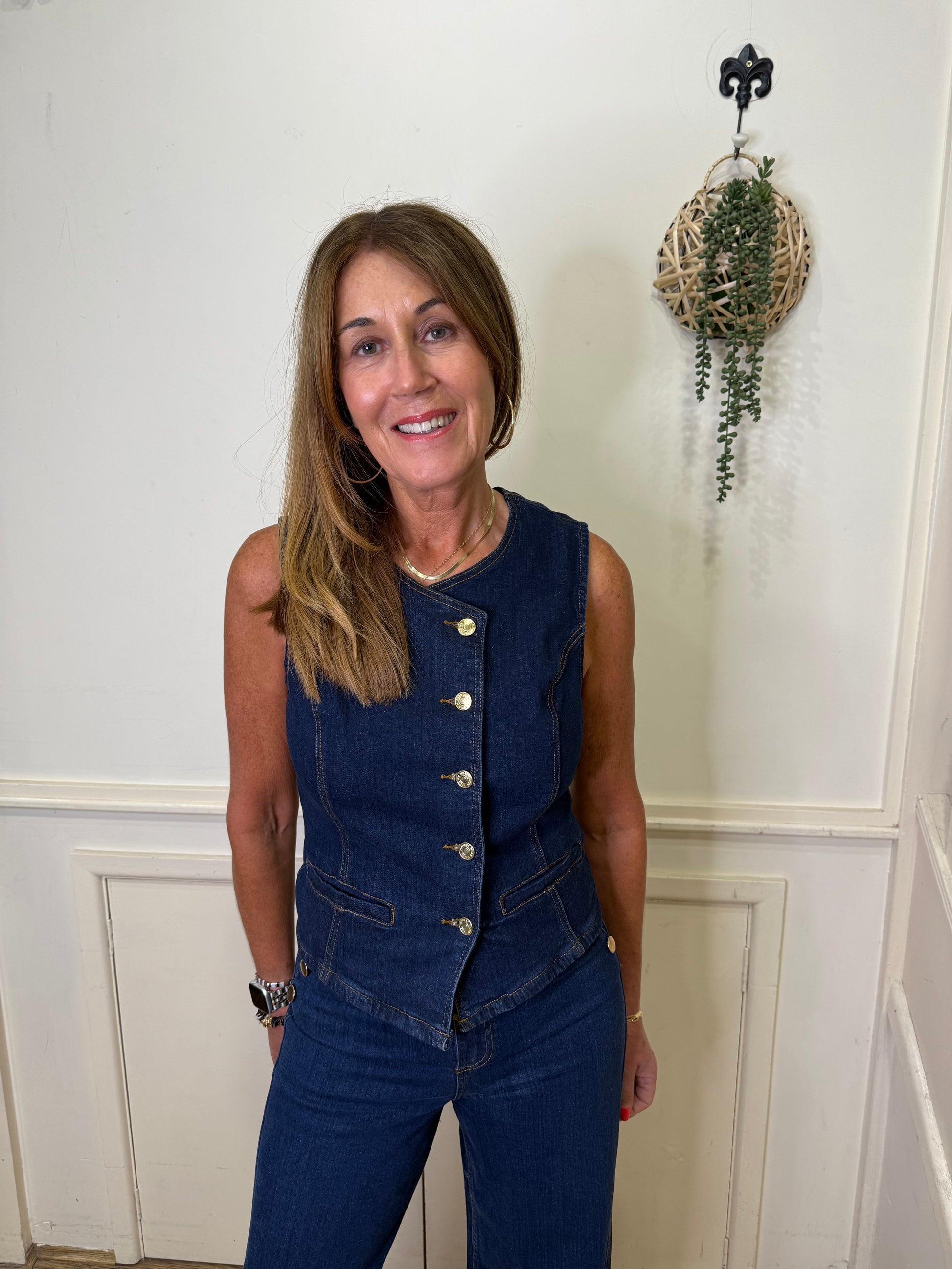 Gold button detail denim waistcoat
