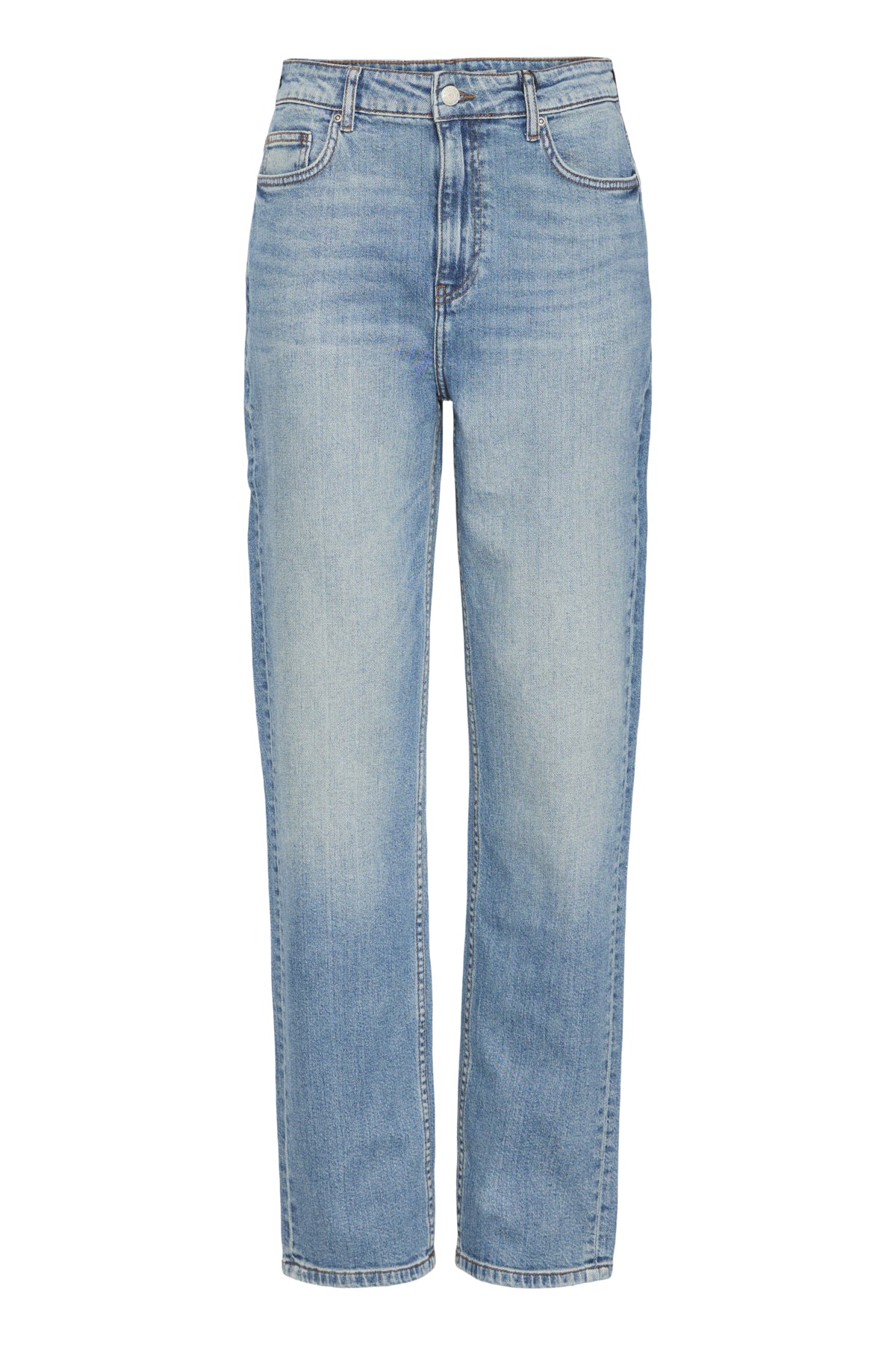 High waist regular fit straight leg jeans. In a light denim wash