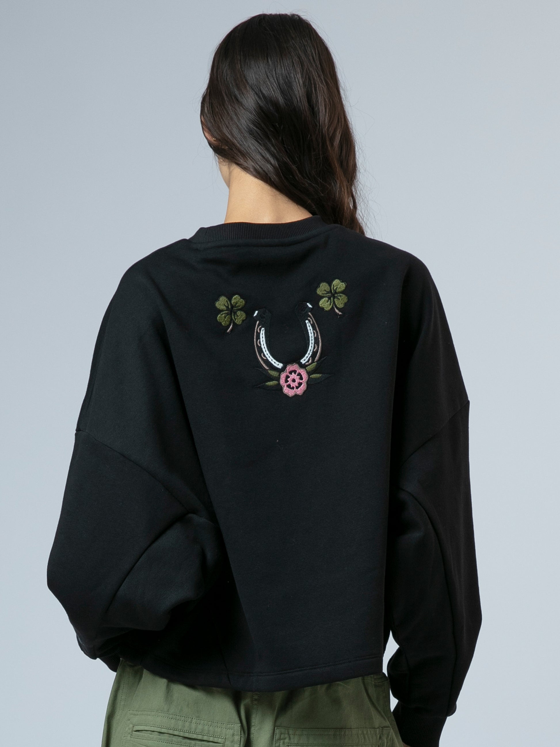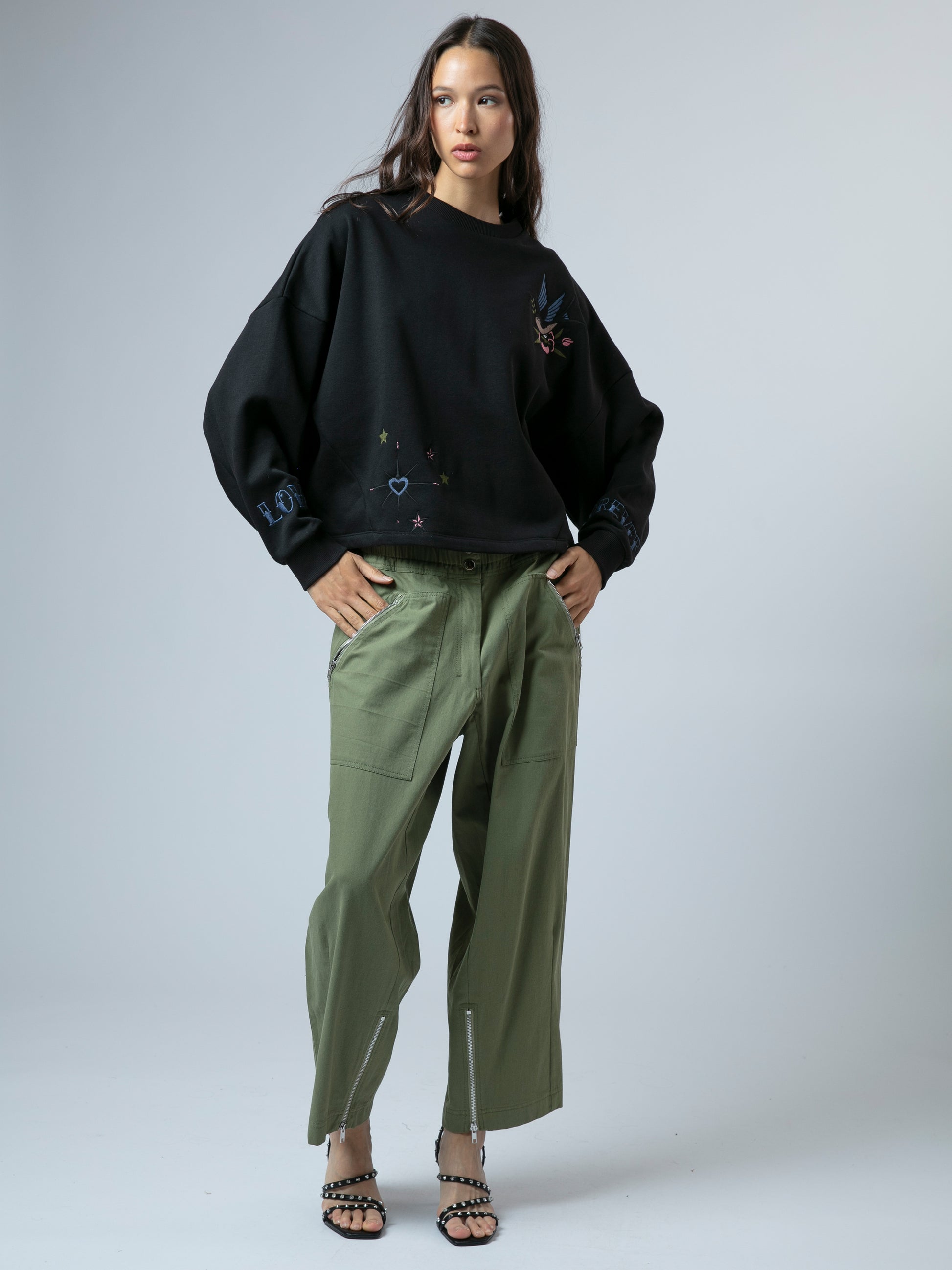 Effortlessly fun and comfortable, the Love Jumper is crafted from soft cotton sweat fabric in an oversized fit. Featuring batwing sleeves, dropped shoulders, and a relaxed hip-length silhouette, it’s finished with ribbed cuffs, hem, and a classic crew neck. Adorned with playful white embroidery, this jumper brings a cheerful vibe to your everyday wardrobe with easy, laid-back style. The model wears a size UK 10. Length from the top: 57 cm